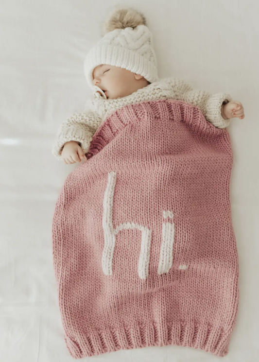 "hi" Pebble Brown Hand Knit Beanie Hat- Newborn
