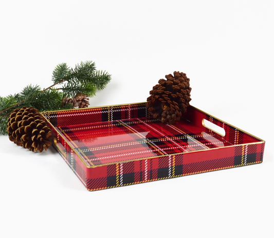 Red Plaid Square Tray