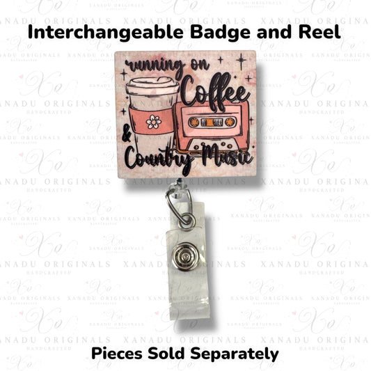 Country Music and Coffee Interchangeable Badge Button with Reel Option