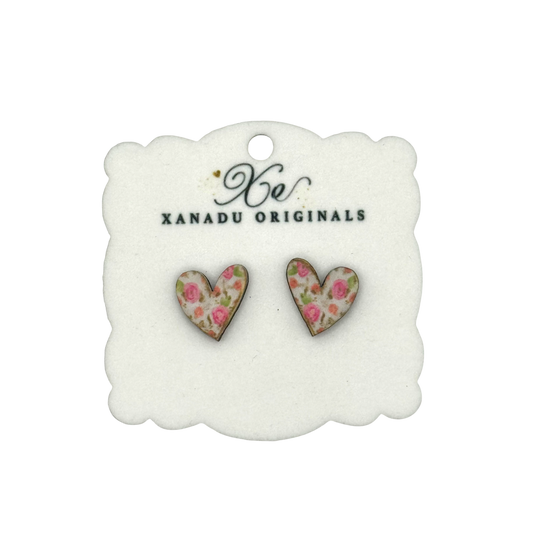 STUD Pink Floral Rose Heart With Post