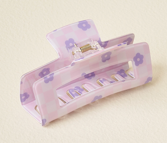 Checkered Floral Claw Clip