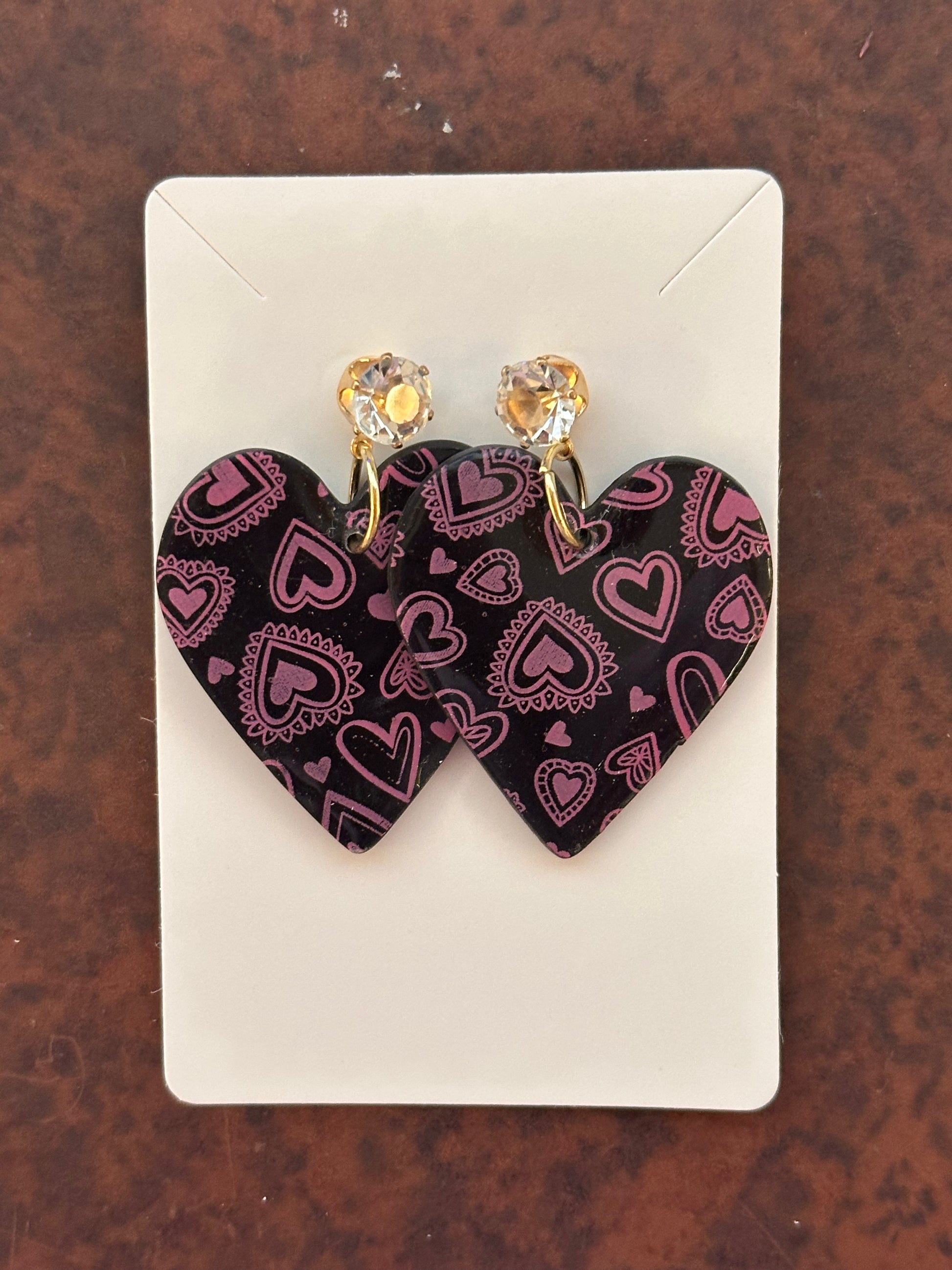 Black Heart Print with Crystal Stud Earrings