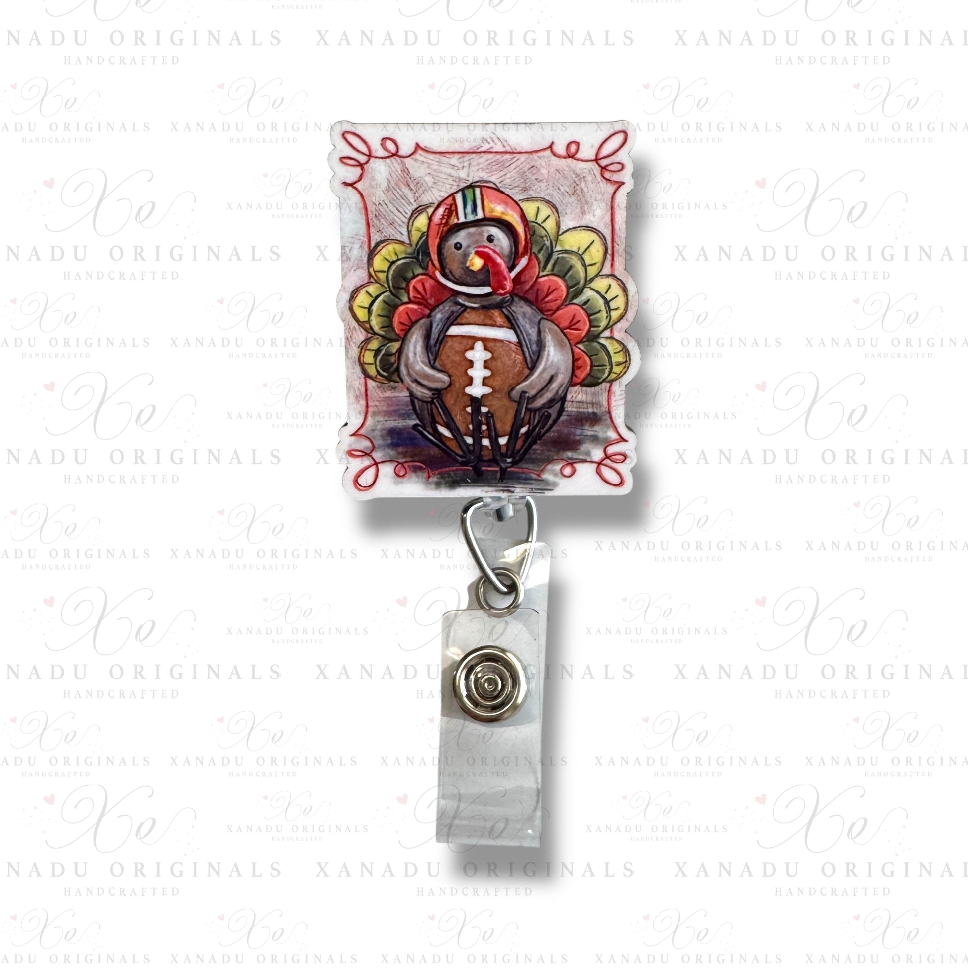 Score Big with Our "Football Turkey" Interchangeable Badge Reel!