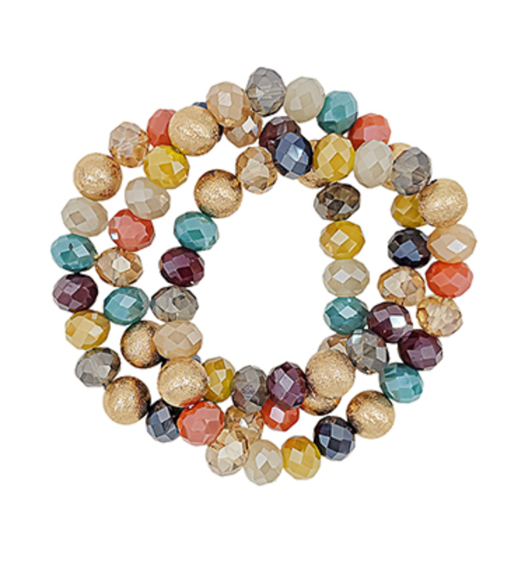 Satin Ball Accent Beaded Bracelet Stack