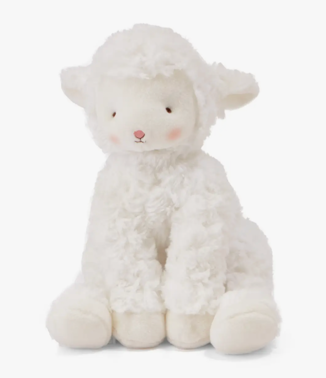 Just the right size to hug you back, this lamb stuffed animal features a soft coat of swirly, snuggle-down fur, and his paws and ears are lined with cozy white velour. It has a cute hand-embroidered face and rosy pink cheeks.