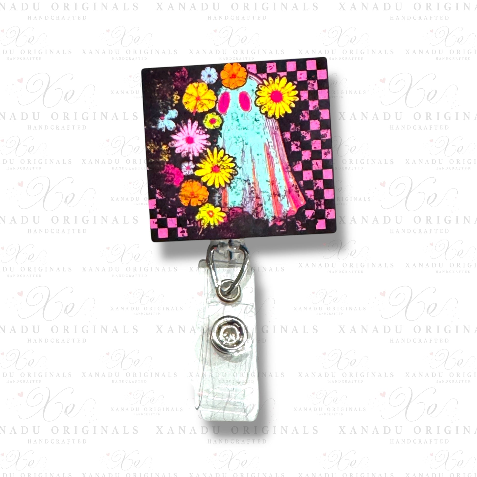 Neon Flower Ghost Interchangeable Badge Button with Reel Option