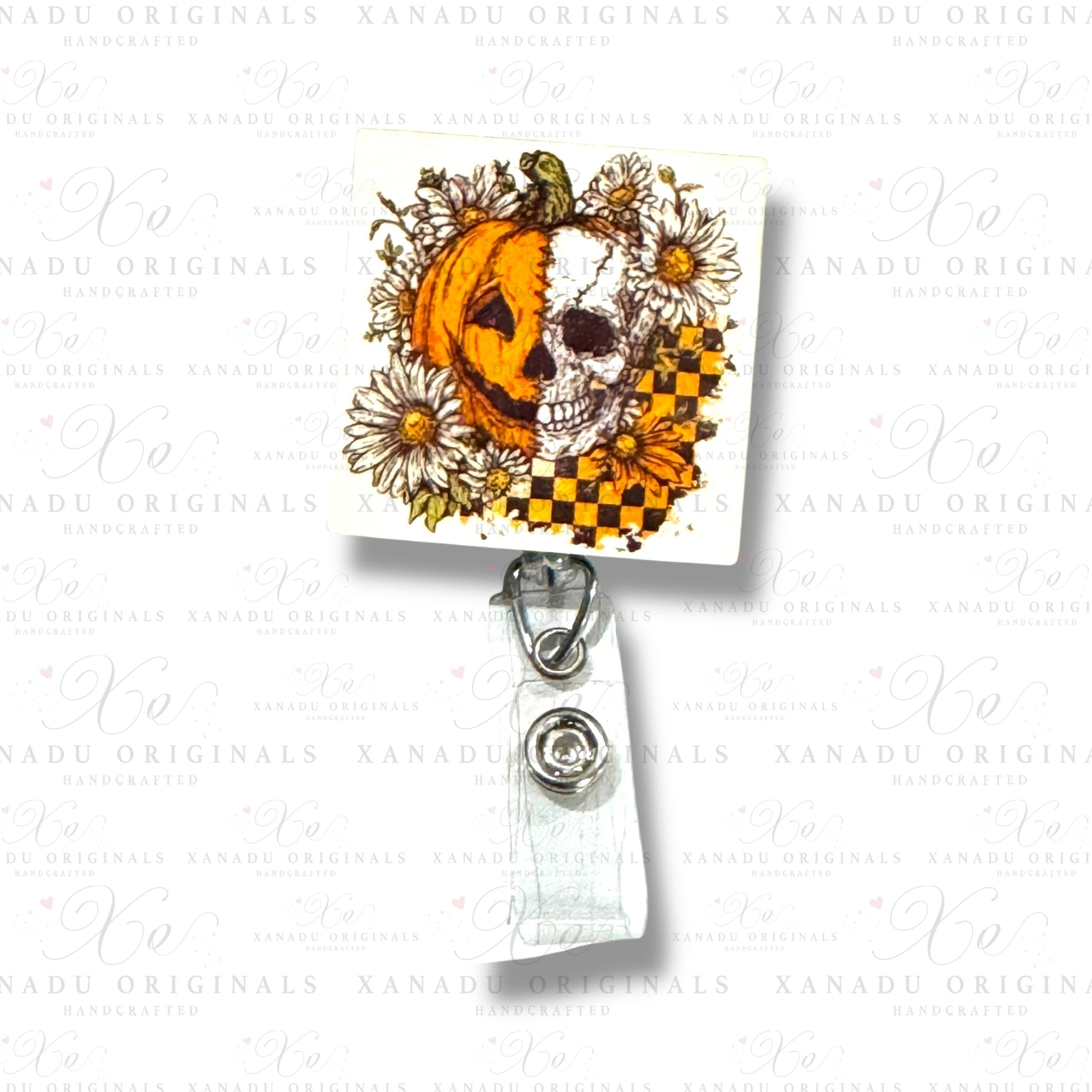 Pumpkin Skull Interchangeable Badge Button with Reel Option