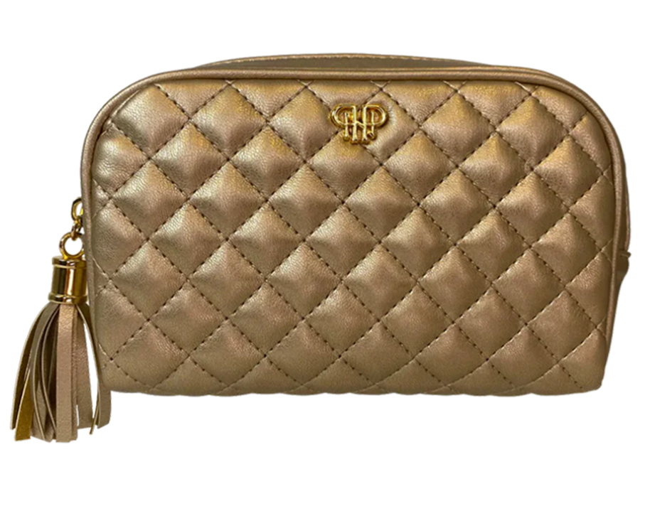 Every day can be luxurious darling with the Gold Small Makeup Bag. With three small pockets in addition to the central compartment (all in easy to clean coated cotton) it keeps your cosmetics organized, accessible, and its compact design will make it your every day go to.