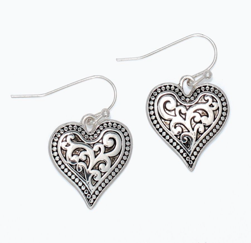 Silver Heart Scrollwork Earrings