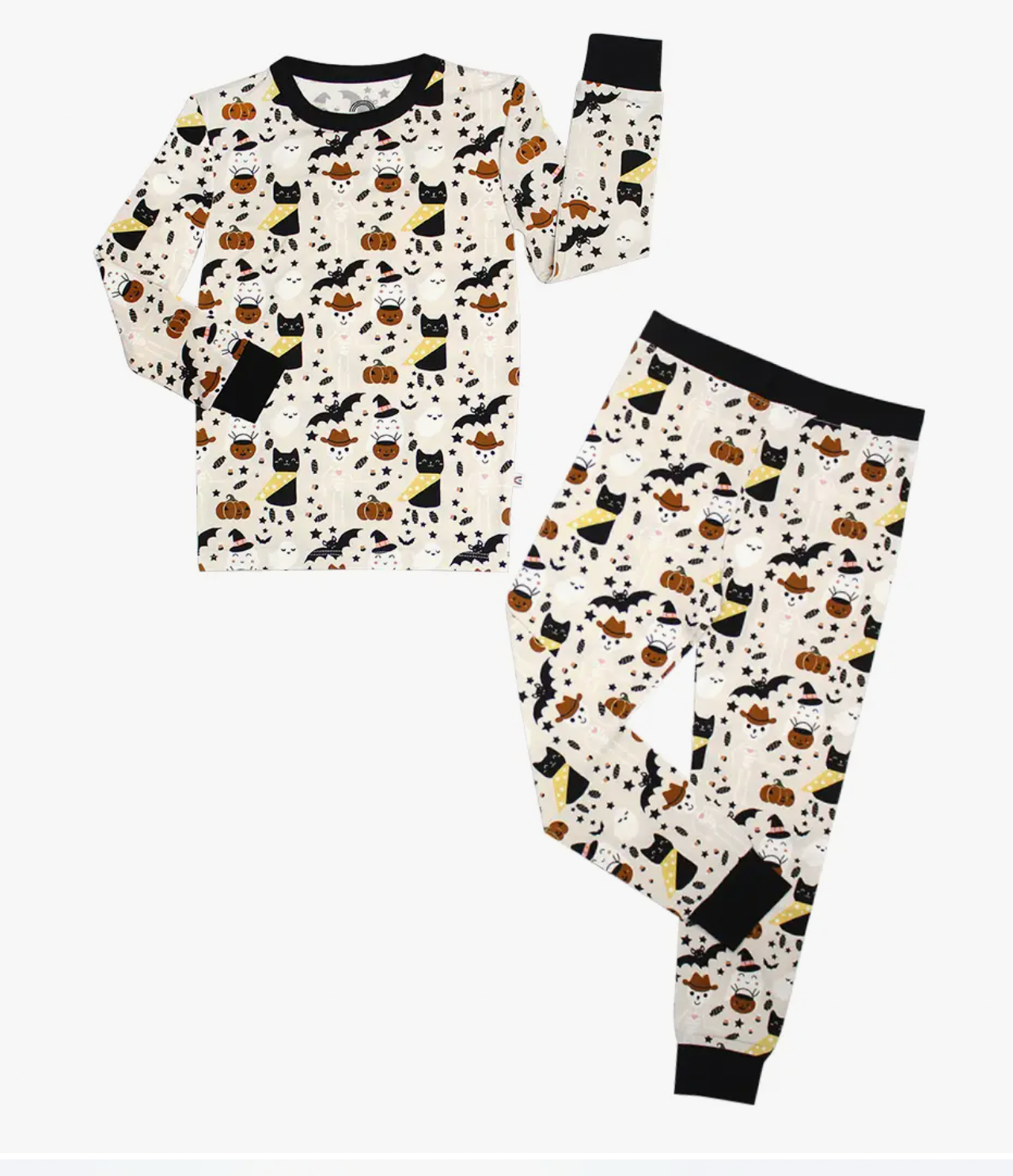 Spooky Cute Halloween Beige Bamboo Kids Pajama Set