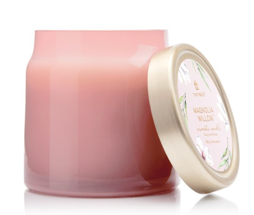 Magnolia Willow - Dewy magnolia blossoms, sheer mandarin, and crushed jasmine leaves bloom into a refreshing, floral fragrance while the beautiful soft pink glass vessel makes the perfect home accent piece.